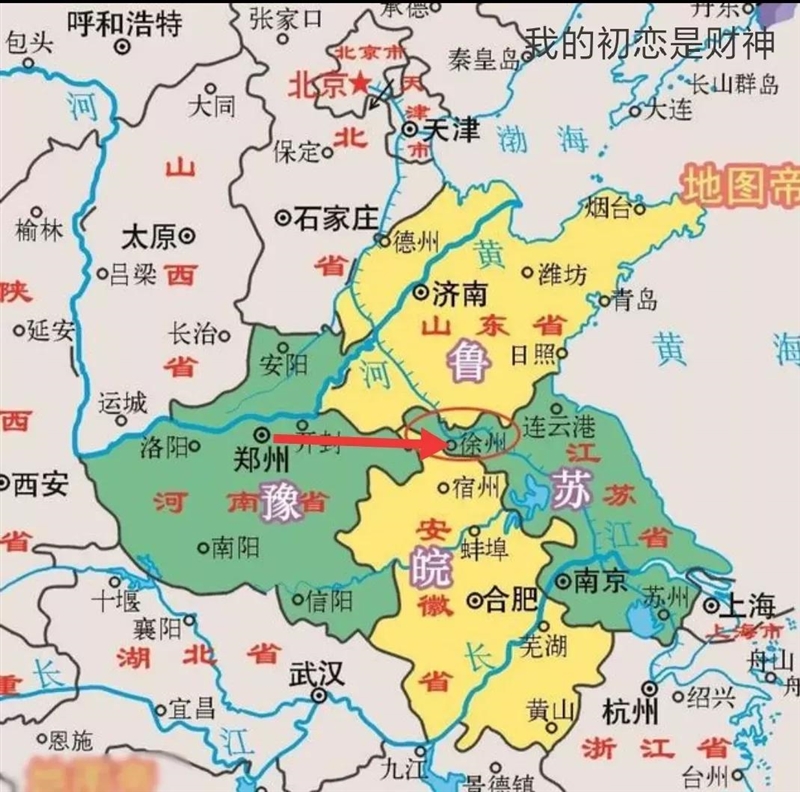 從這個(gè)圖,不難看出來(lái),從鄭州出發(fā),距離最近的省外城市,就是徐州。河南與江蘇之間,雖然隔著安徽省,并沒有直接接壤的地方,但是徐州和鄭州之間,卻存在一條直線一樣的高速公路,那就是連霍高速。這樣的一條高速公