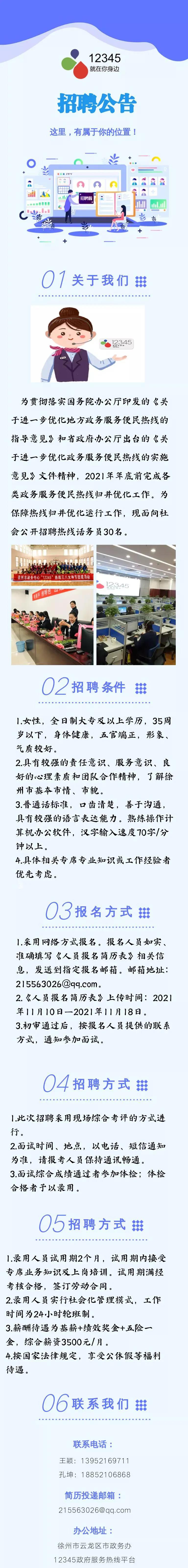 徐州市12345政府服務(wù)熱線招聘話務(wù)員30人