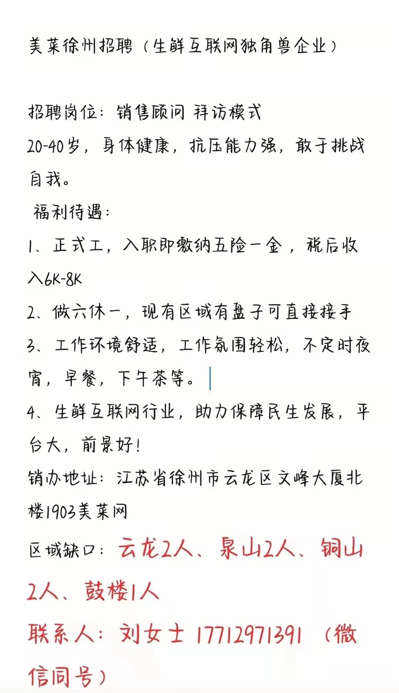 美菜徐州招聘